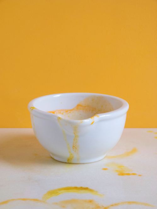 Now your soup looks cooked. It’s certainly hot and it’s time to watch the next episode of your show so let’s say it’s done! Get out your stick blender and whiz it up. Add plenty of salt and don’t worry that it tastes like you tipped in a bit too much tumeric.
